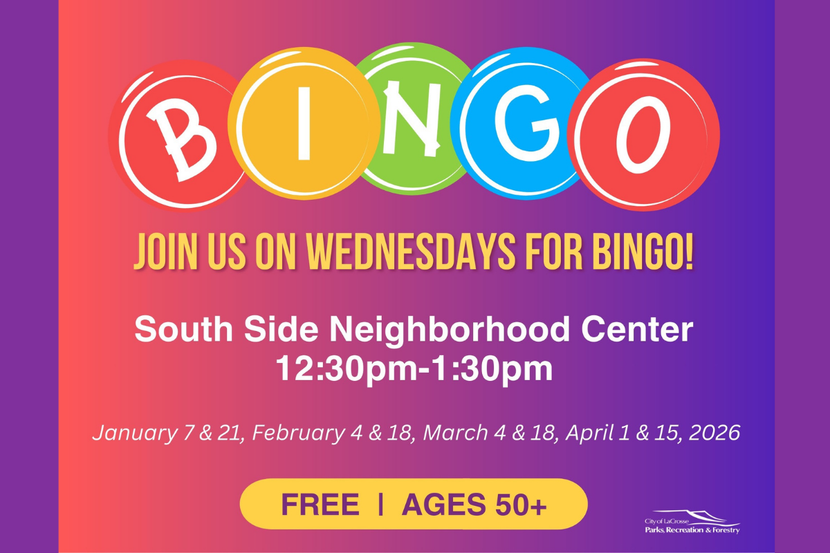 Join us on Wednesdays from 12:30pm-1:30pm at South Side Neighborhood Center for Bingo! 🎉