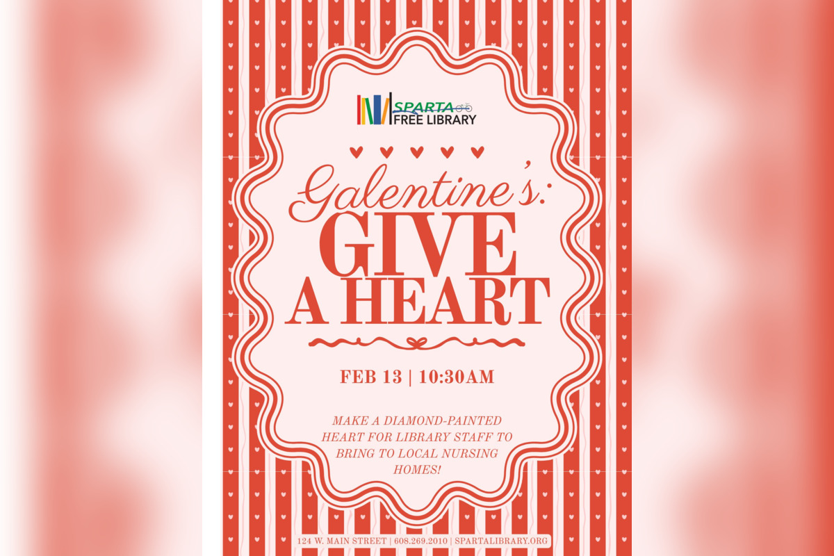Join the library for a Galentine’s Day themed crafting morning! We’ll be making diamond-painted hearts for staff to bring to local nursing homes to brighten someone’s day. Free and open to those 18 and over.