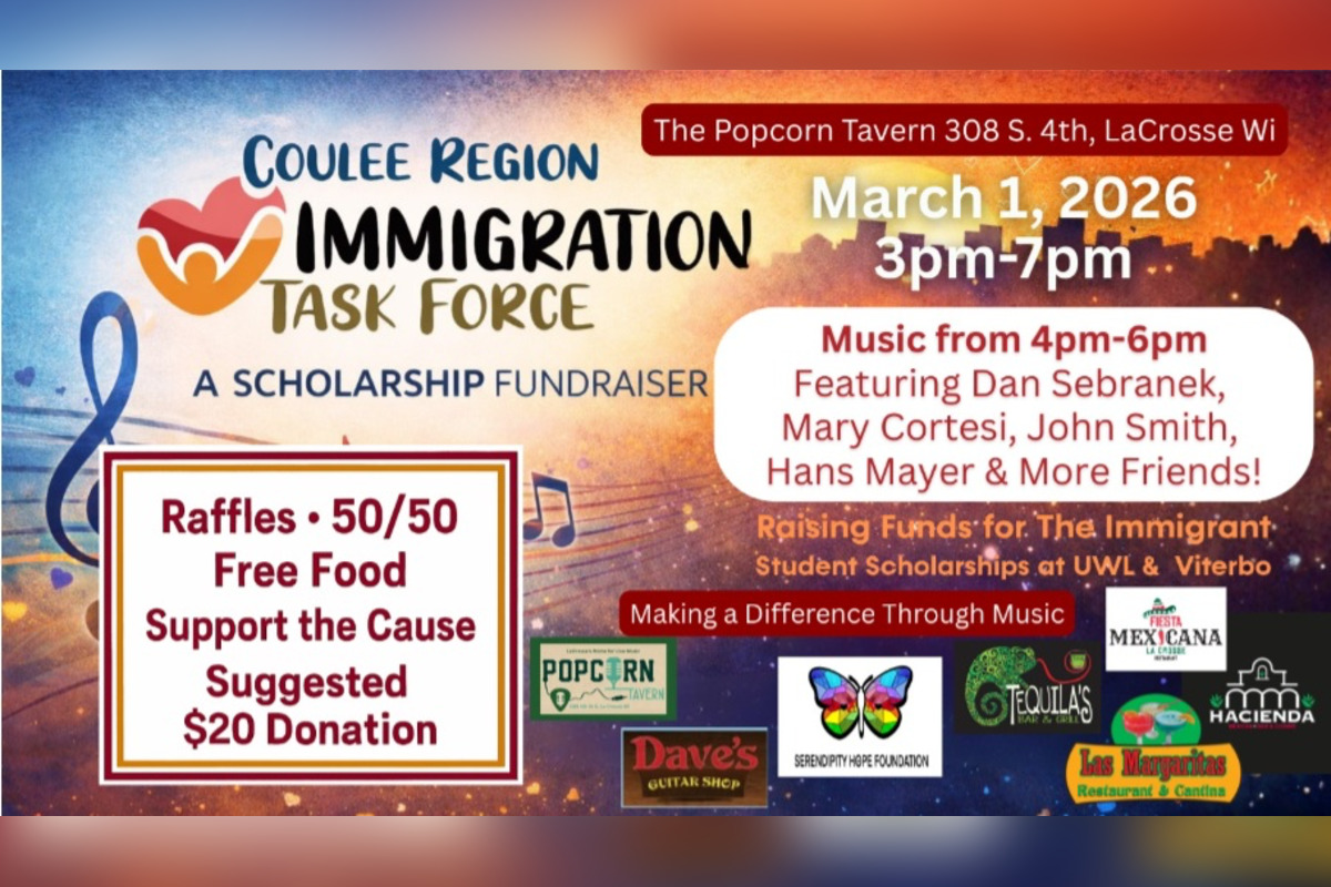 Join us for an afternoon of music, community, and collective care as we raise funds for immigrant scholarship programs supporting local students and families. This is about showing up for our neighbors and investing in access, education, and opportunity. A chance to contribute to the Coulee Region Immigration Task Force’s Scholarship Fund for Immigrant Students.