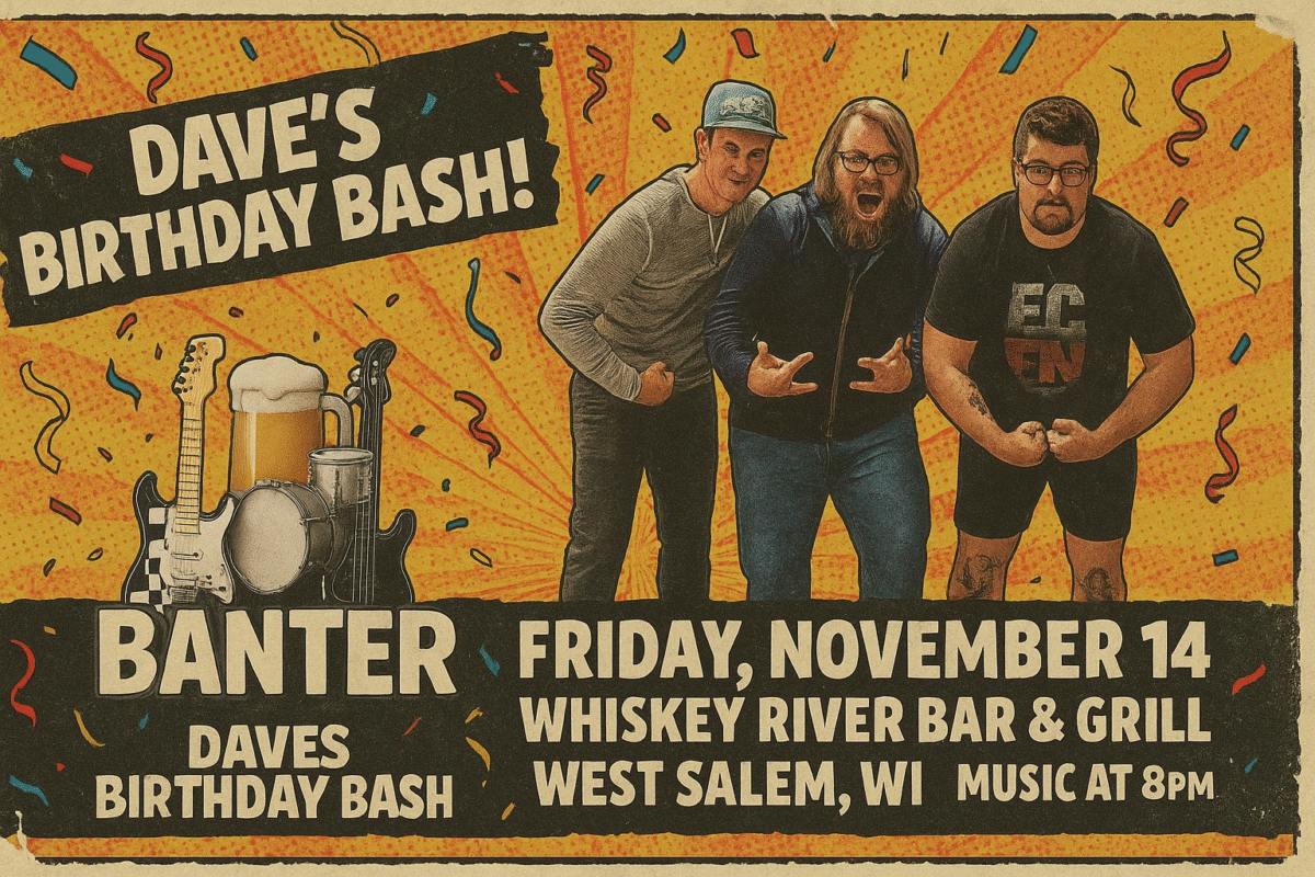 Come help us celebrate another year around the sun for Banter’s main maestro, Dave! We are turning up the volume in honor of Dave’s birthday and hope to see you! As always a night filled with nostalgic rock and great vibes! Don’t forget the teamdrinks