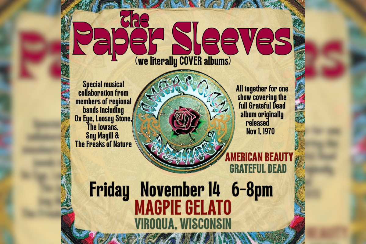 Introducing The Paper Sleeves (we literally COVER albums) — a band born out of the simple idea of making great music with great friends. And what better way to kick things off than by covering the Grateful Dead’s American Beauty album LIVE, start to finish?! Think Sugar Magnolia, Truckin’, Ripple, Candyman, and so much more!