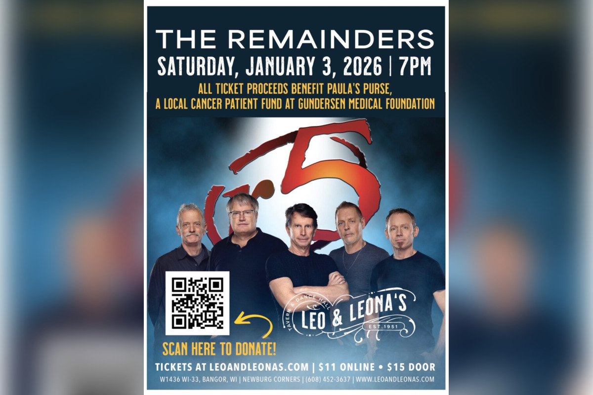 Doors open at 6pm with live music from The Remainders from 7-10pm at Leo & Leona’s! All ticket and raffle proceeds will benefit Paula’s Purse, a local cancer patient fund at Gundersen Medical Foundation.