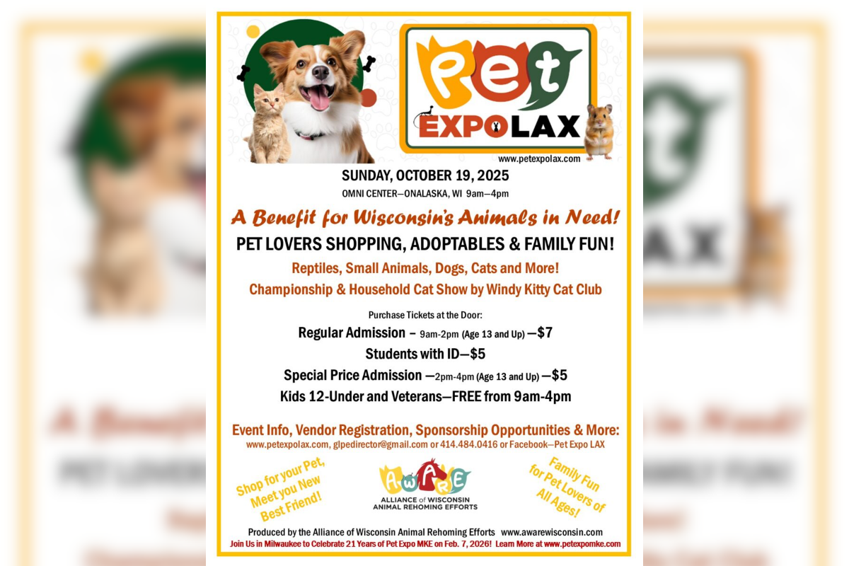 Pet lovers! Please join us for the area’s best fundraiser including pet loving shopping and services, activities and reptile and small animal education, meet Wisconsin’s cutest adoptables, Police K9 Teams and more! Cat Lovers! – Championship & Household Pet Cat Show presented by Windy Kitty Cat Club – October 18 & 19, 2025. Food trucks on hand with yummy food for all!