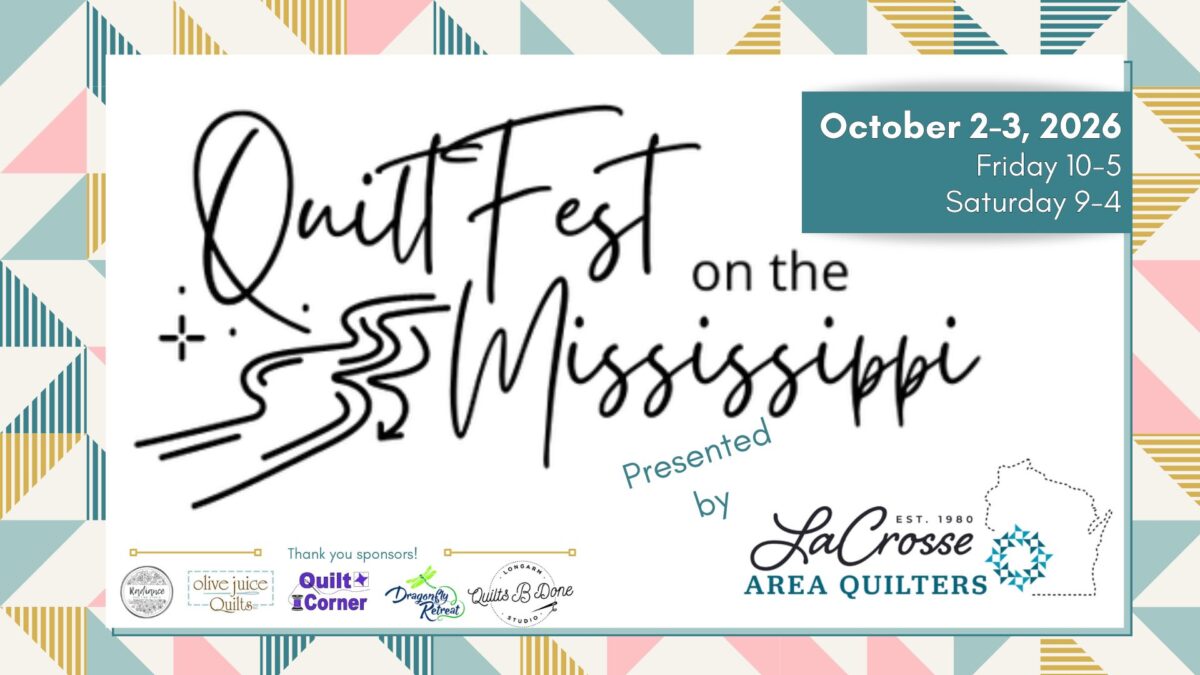 Join us for QuiltFest on the Mississippi presented by the La Crosse Area Quilters at the Onalaska Omni Center on October 2-3, 2026. Submit your quilt entry form by September to compete for cash viewer’s choice awards. In addition to displaying hundreds of beautiful quilted works, this biannual quilt show includes a boutique selling quilts and hand made items, basket raffles, vendors, a quilt raffle, and demonstrations through the show. Sign up for LAQ membership to join our 160+ current members for monthly meetings, share your work, participate in programs and retreats, and make new quilting friends!