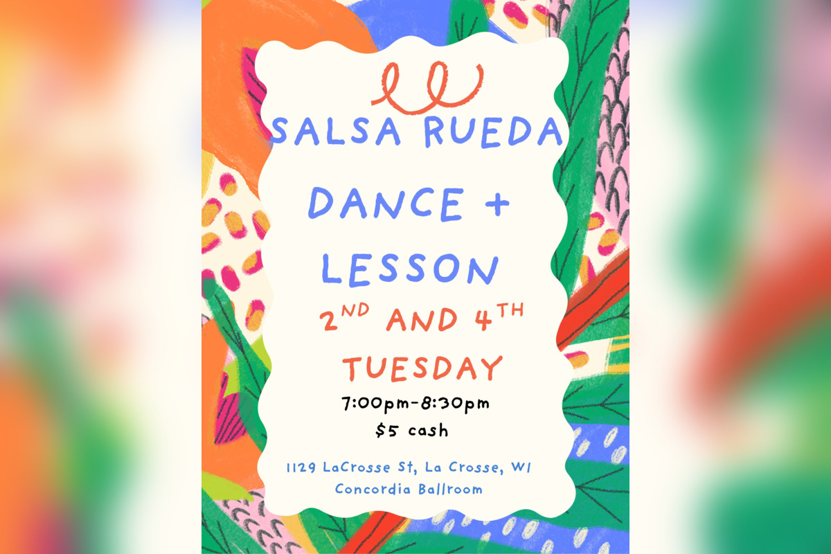 Salsa Rueda Lesson Starts at 7:00 pm. $5 cash at the door. No experience necessary. No partner needed. We will have a lesson and group dance followed by a Social Dance half hour.