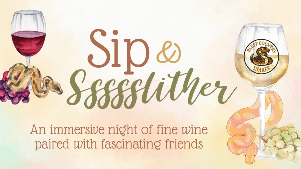 Join us for Snakes & Sips, an immersive wine tasting experience where education meets adventure. Guests will enjoy thoughtfully paired wines while getting up close with live snakes in a safe, welcoming setting with education from Bluff Country Snakes.
