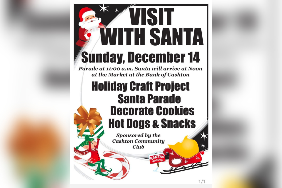 Santa is coming to town. Santa will again be coming to Cashton, traveling around town in a fire truck. He will leave the fire station at 11 AM and the parade will end at the Market at the Bank of Cashton at noon. There will be a Holiday Craft Project, Decorating Christmas Cookies, and of course Santa at the market. All are welcome!!!!