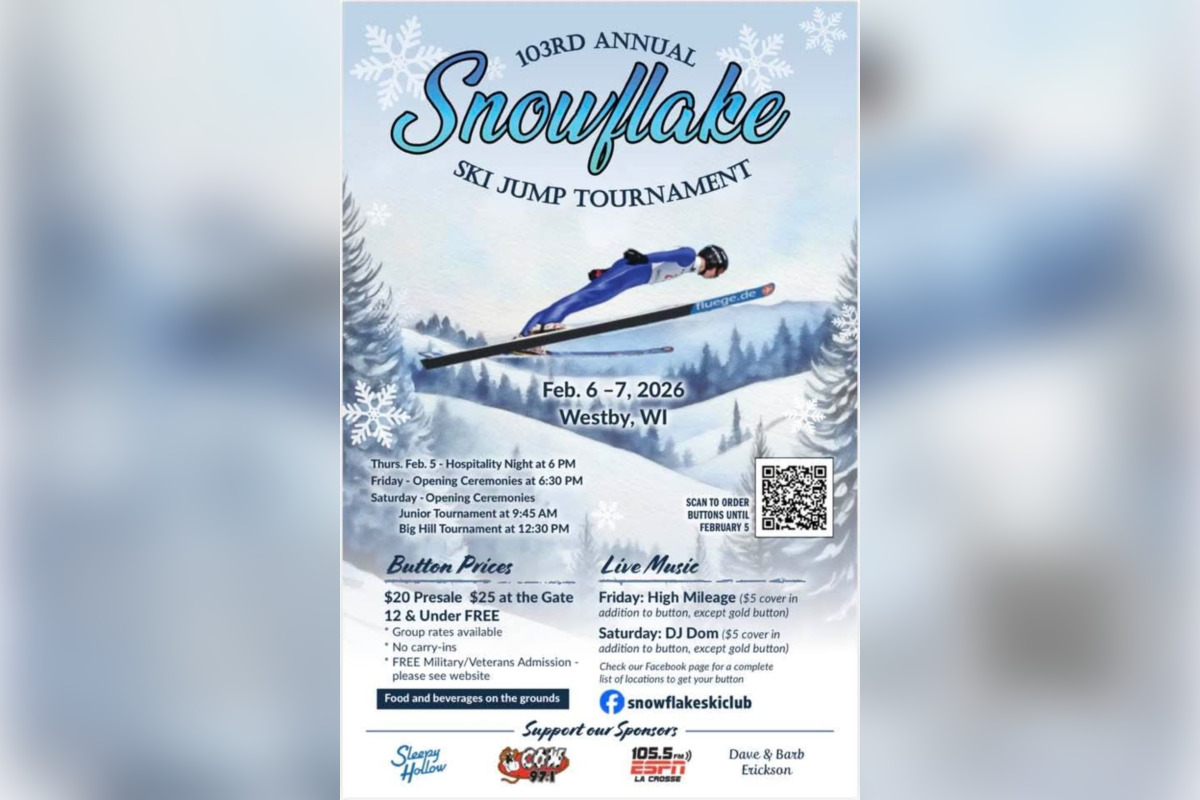 Snowflake Golf & Ski County Road P, Westby, Wisconsin, United States103rd Snowflake Ski Jump – General Admission: $20 per person in advance (per button), $25 at the gate Kids 12 & under: FREE Free military/veteran's admission. This button includes general admission for both Friday and Saturday. Parking is free. Food & drinks available on site. Jump times: Friday: 7:00 PM...