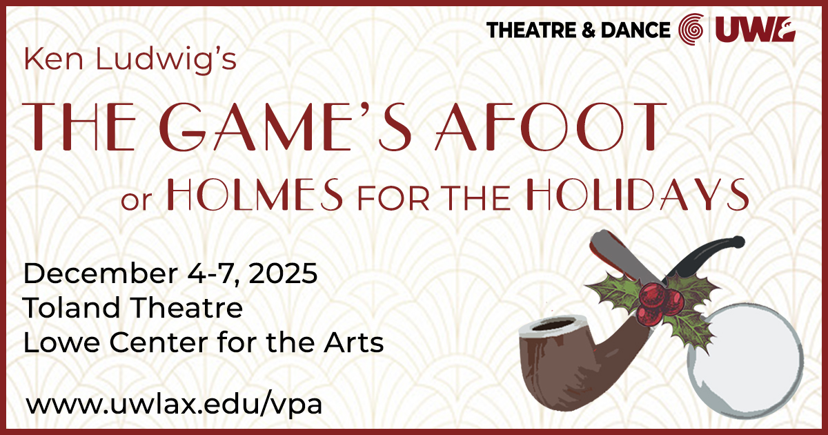 Toland Theatre 333 N. 16th Street, La Crosse, WI, United StatesThe Game’s Afoot, or Holmes for the Holidays By Ken Ludwig Directed by Greg Parmeter It’s Christmas Eve 1936, and Broadway star William Gillette, admired the world over for his portrayal as Sherlock Holmes, has invited his fellow cast members to his Connecticut castle for a weekend of revelry. But,...